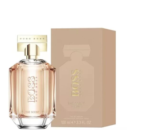 100ml bottle of BOSS The Scent for Her eau de parfum. A luminous and irresistible fragrance, BOSS The Scent for Her combines top notes of green mandarin and pink pepper resting on a heart of orange blossom, with roasted cocoa providing a sensual base note. This scent is delivered in a jewel-shaped bottle for feminine elegance.