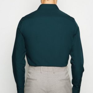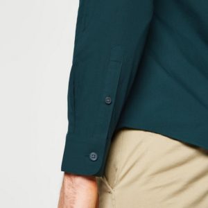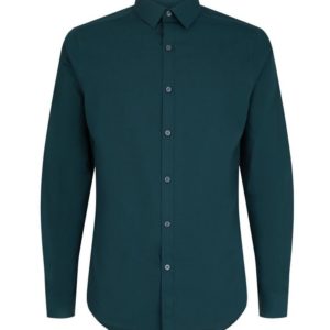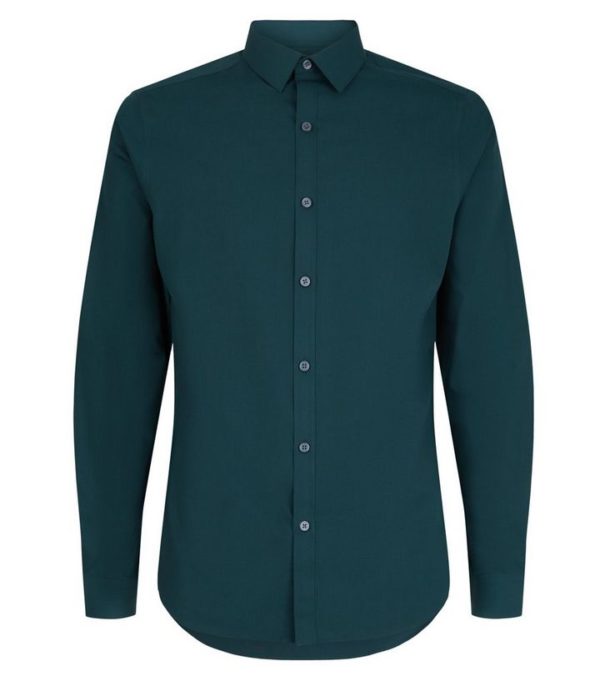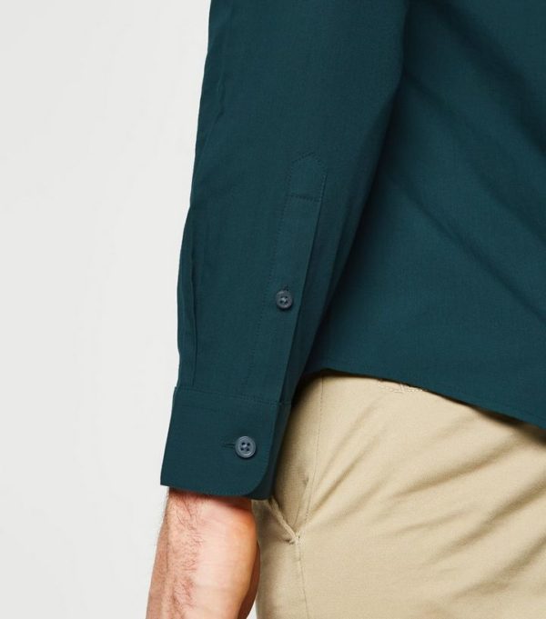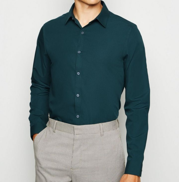 Sharpen up your style with this green buttoned shirt. For a work-ready outfit, dress with check trousers and loafers.